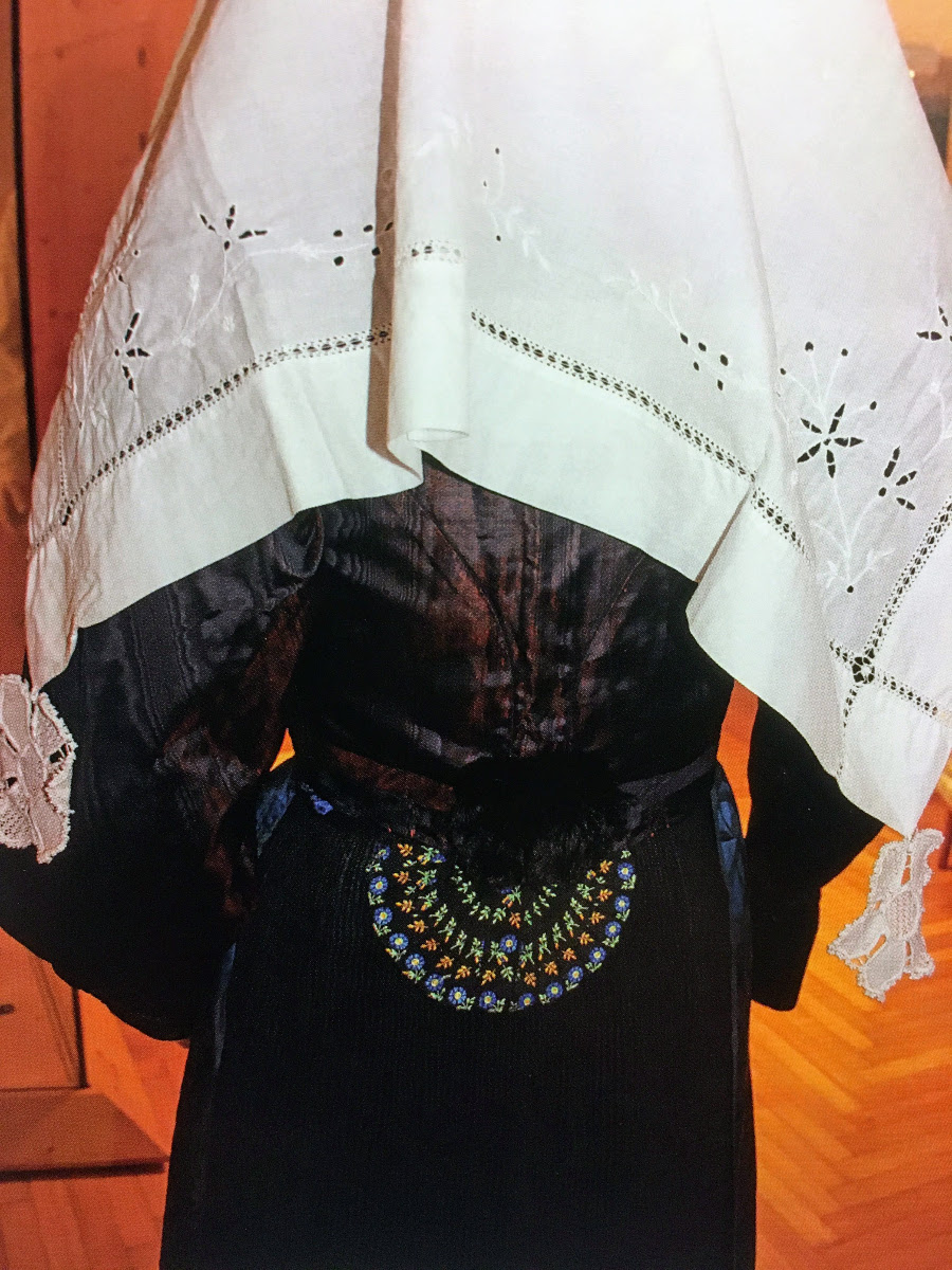- Muda da sposa. E’ la variante dell’abito che si indossa in occasione del matrimonio e di cerimonie importanti. Si completa col cappello o col panét di roséti.