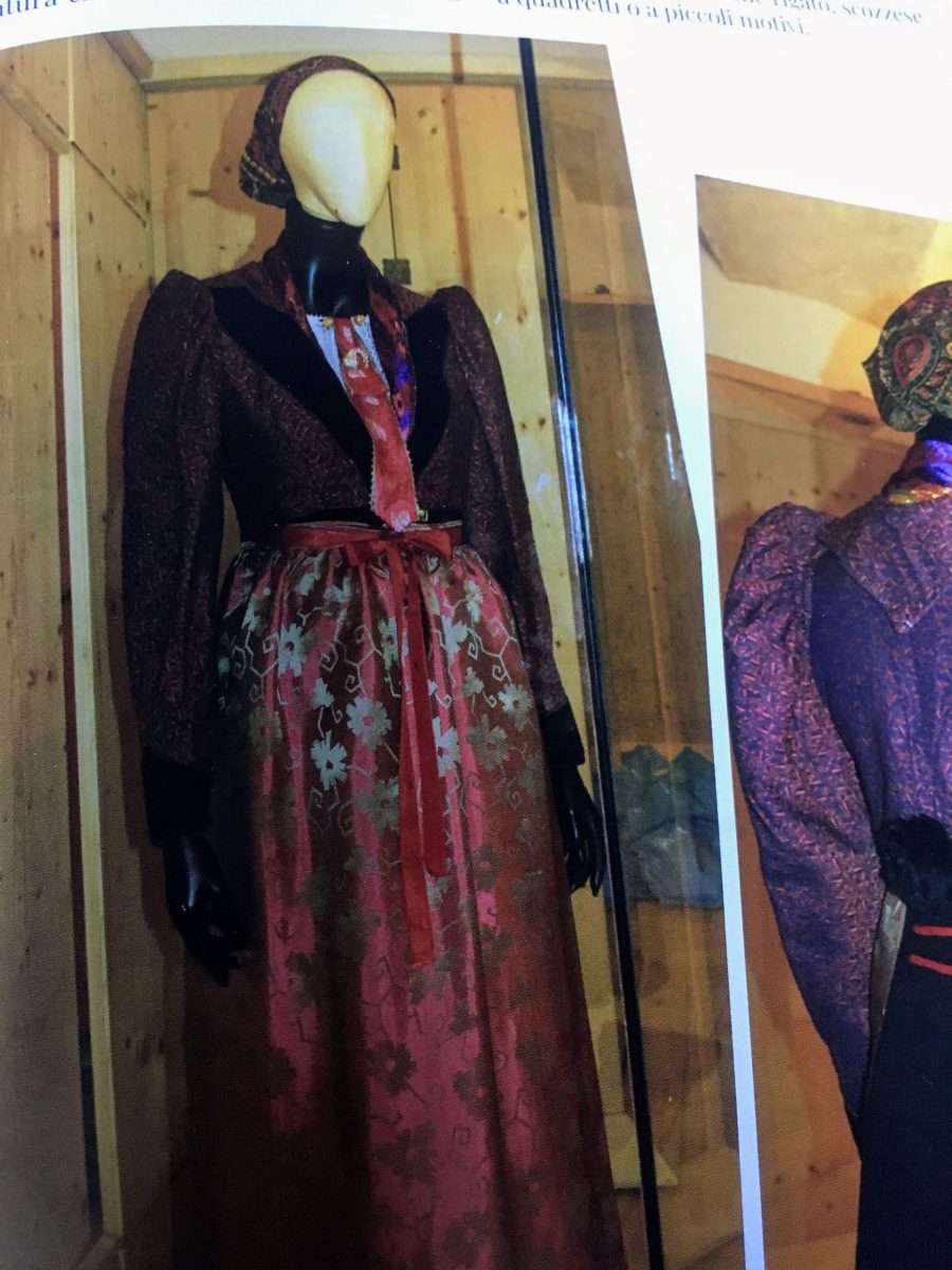 Datare l’origine dell’abito tradizionale grosìno non è semplice. Con certezza sappiamo che nel XVII secolo un cospicuo numero di Grosini, per ragioni di lavoro, emigrò in terra di San Marco, venendo a contatto con quel miscuglio di razze e culture che costituivano Venezia, da secoli frequentatissimo porto di mare. Proprio in questo periodo pare che l’abito grosìno si sia arricchito notevolmente, differenziandosi da tutti gli altri della valle per lo splendore dei colori e per la varietà e la raffinatezza dei tessuti e della loro lavorazione. Una contaminazione fra elementi di cultura alpina e foggia di stile orientale che generò quel non so che di esotico, che avrebbe poi sempre contribuito al suo successo.